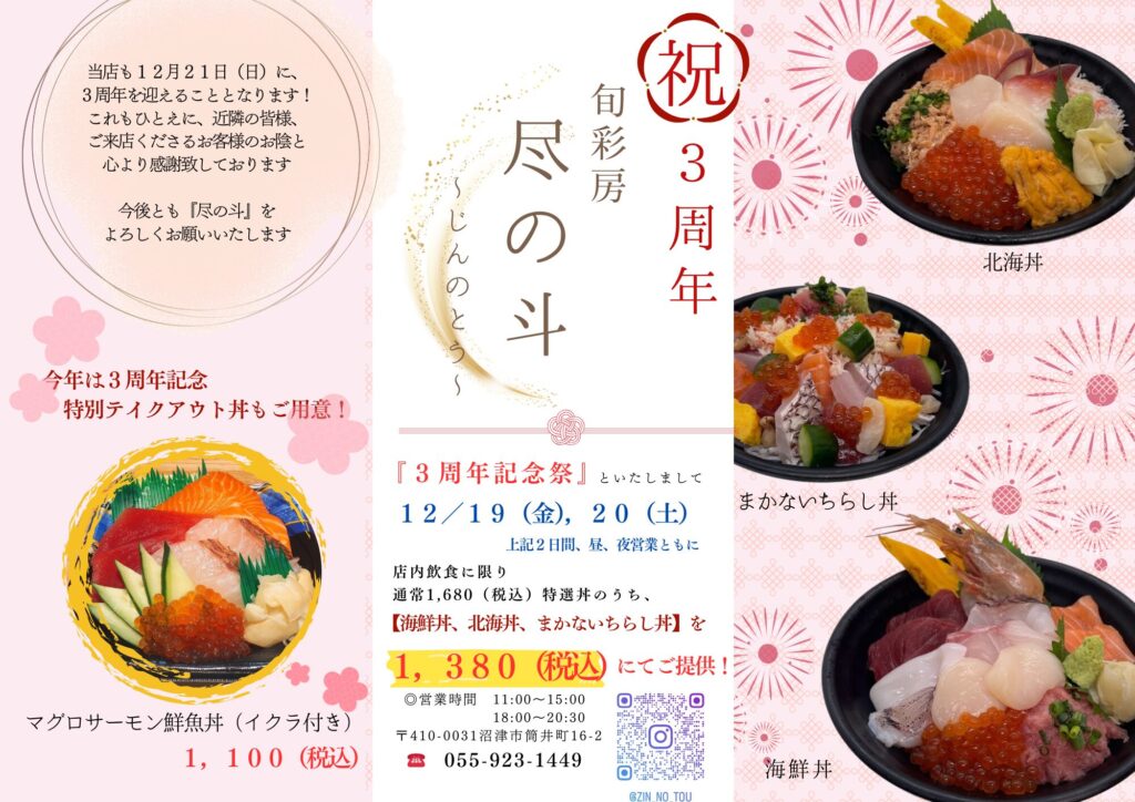 - 『旬彩房 尽の斗』3周年記念のご案内