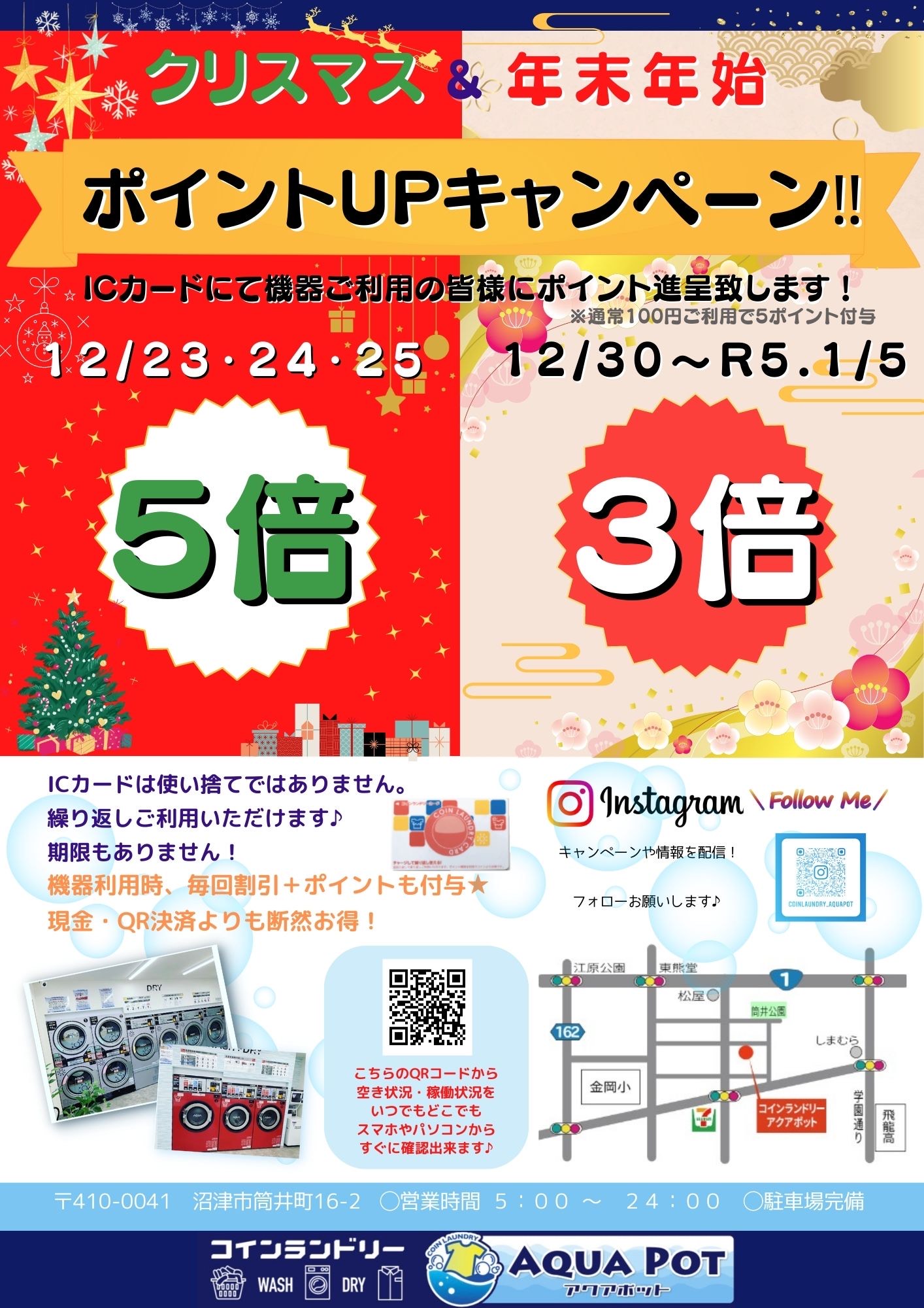年末年始の期間、12/30~1/5の期間はポイント3倍進呈致します!!