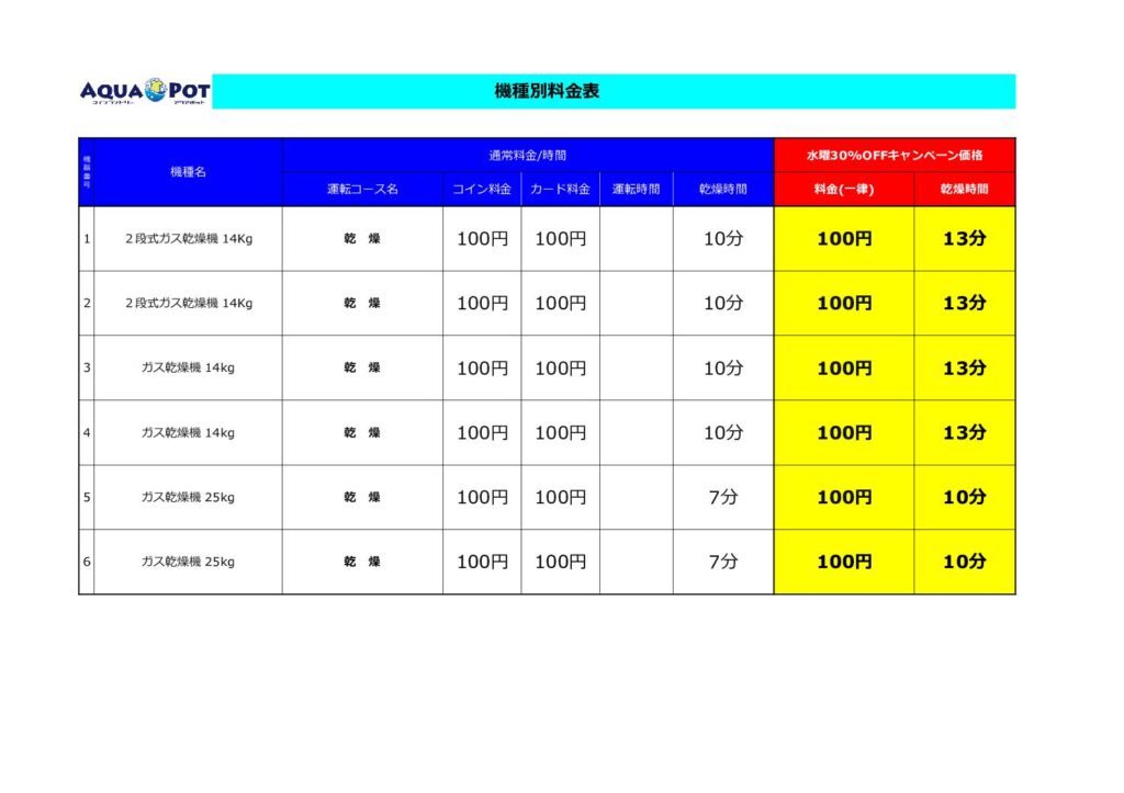 乾燥機については、乾燥時間を30%延長
